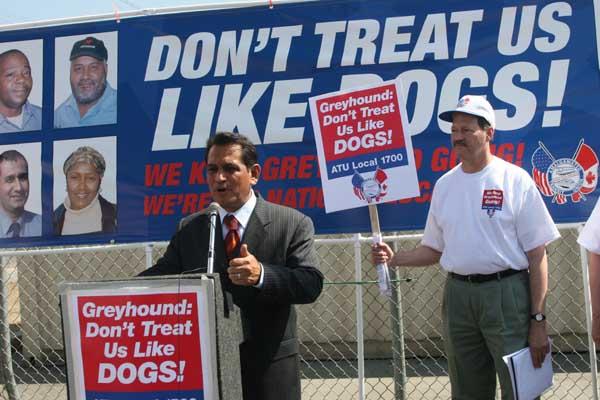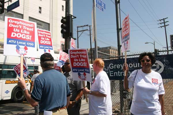 The Los Angeles Rally landed a sharp blow to Greyhound in Local 1700's fight for a new contract. One of the largest locations of Greyhound Lines, Los Angeles was to be followed by rallies in Atlanta and New York. They didn't materialize because the company wilted in the face of Solidarity shown by Local 1700 and it's supporters. 1700 Members were joined by Executive Board Members Bruce Hamilton and Karen Miller, Congressman Gil Cedillo of California and Neil Silver - President of ATU Local 1277.